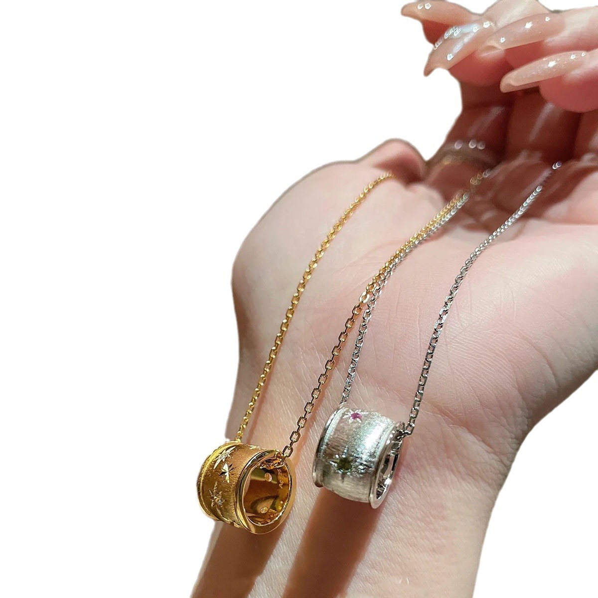 silver brushed hexagram necklace
