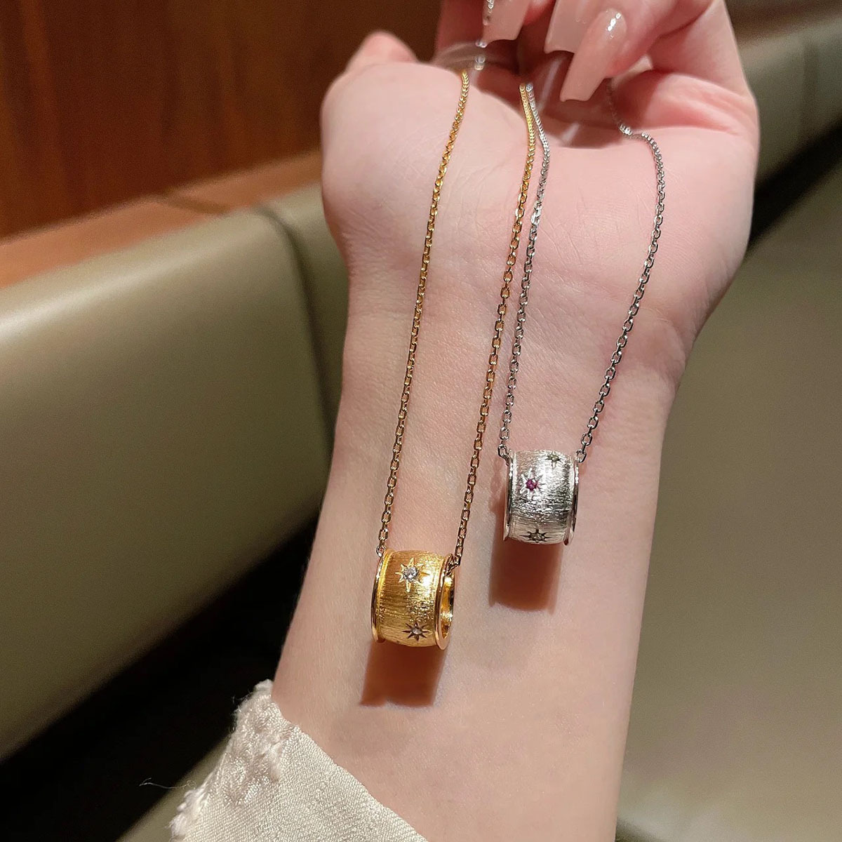 gold brushed hexagram necklace