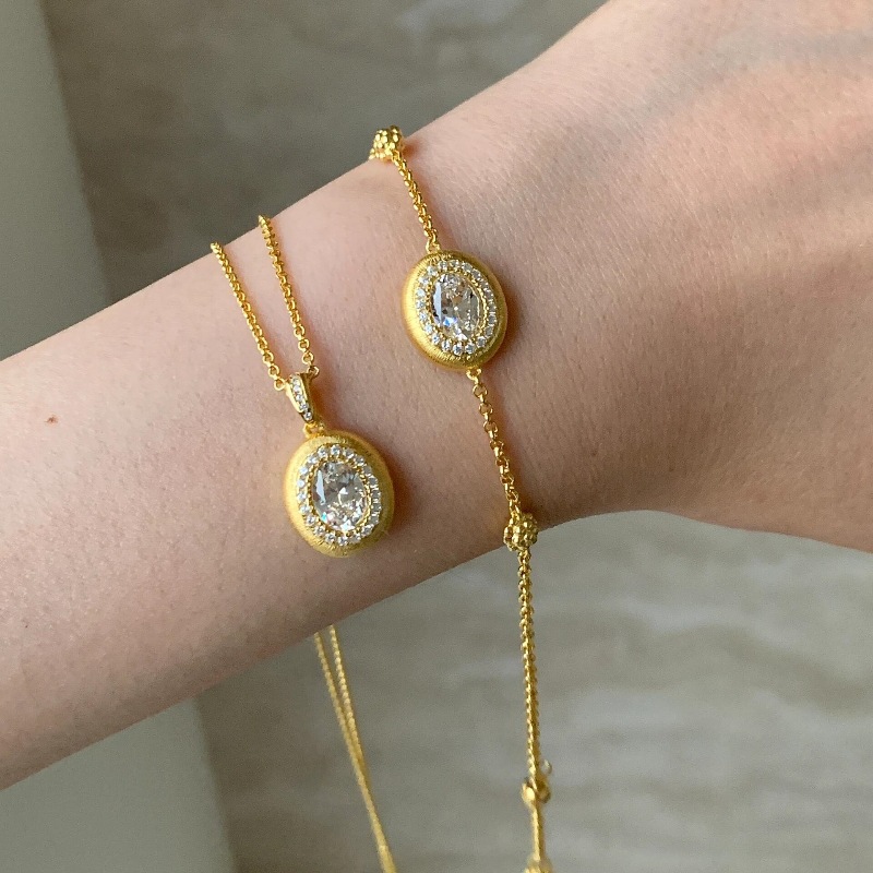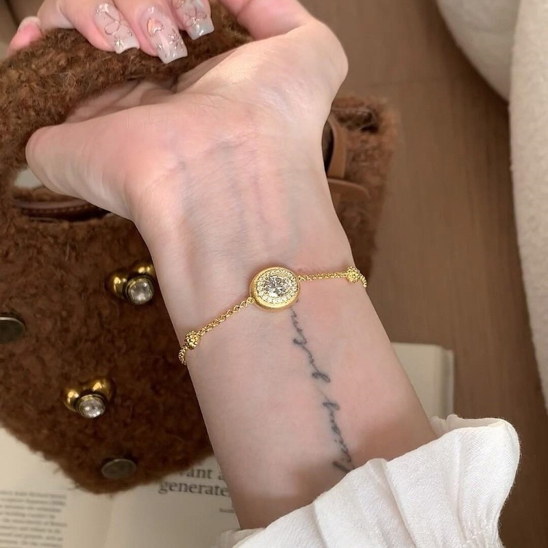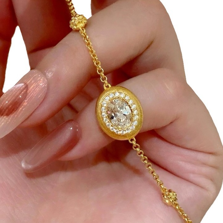 gold brushed big diamond bracelet