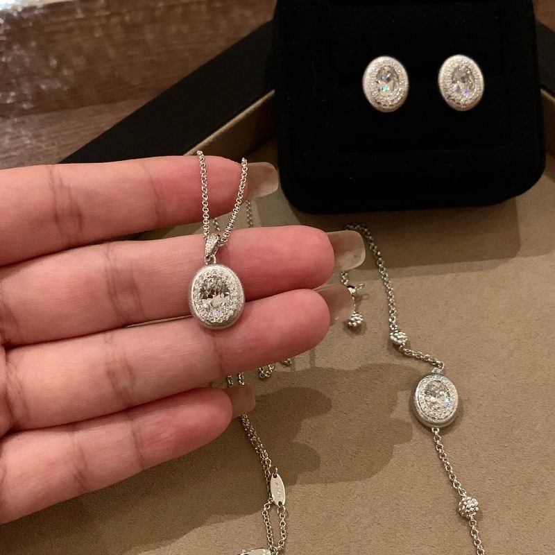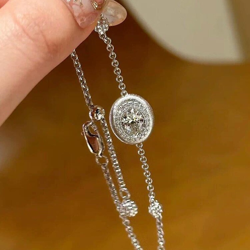 silver brushed big diamond necklace