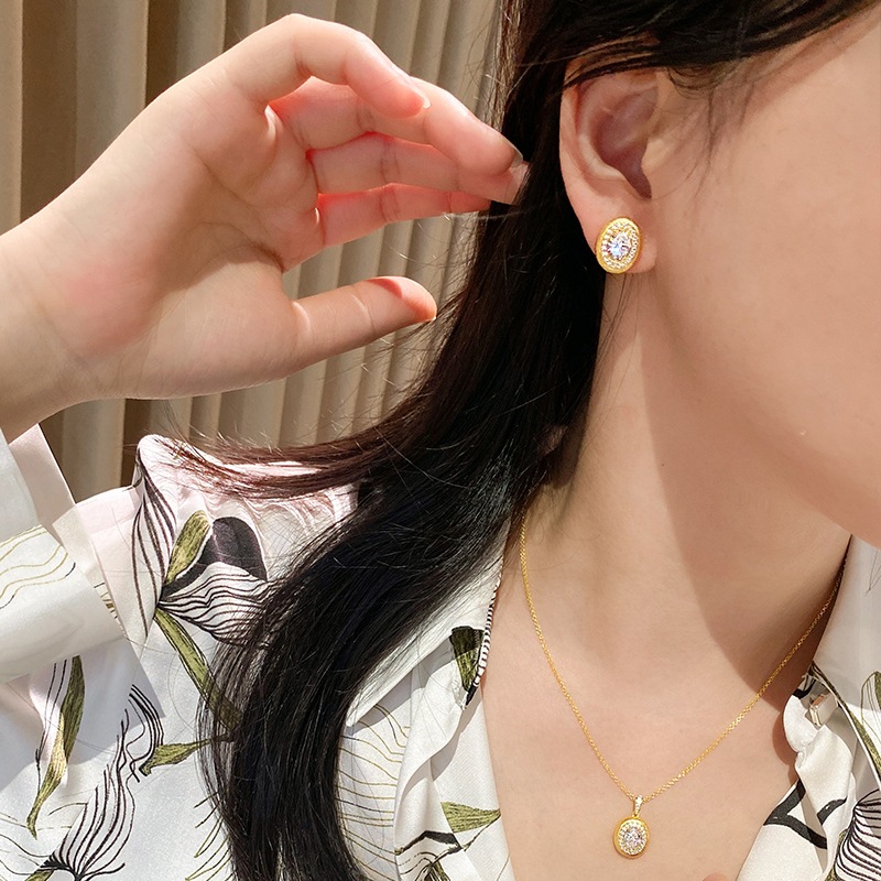 gold brushed big diamond ear studs