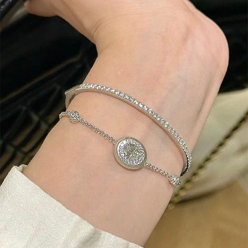 silver brushed big diamond bracelet