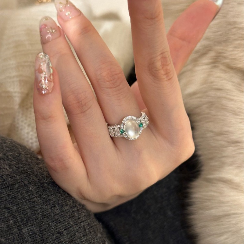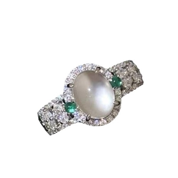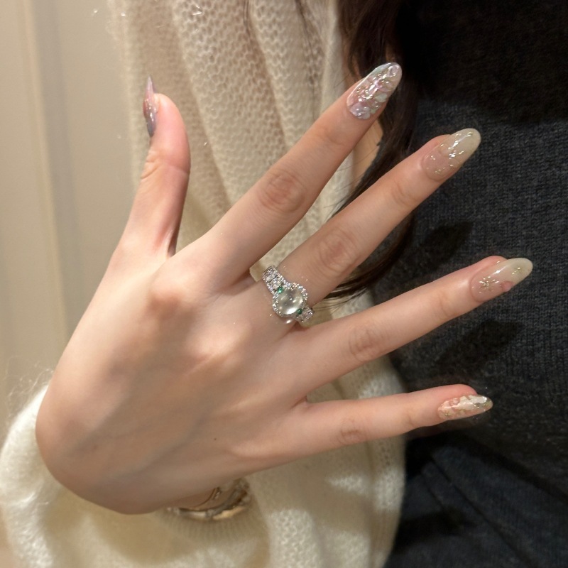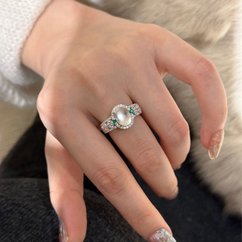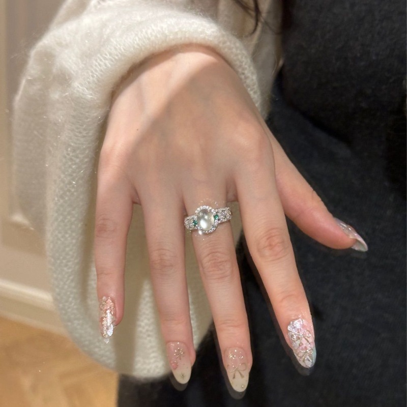diamond oval water-foam jade ring