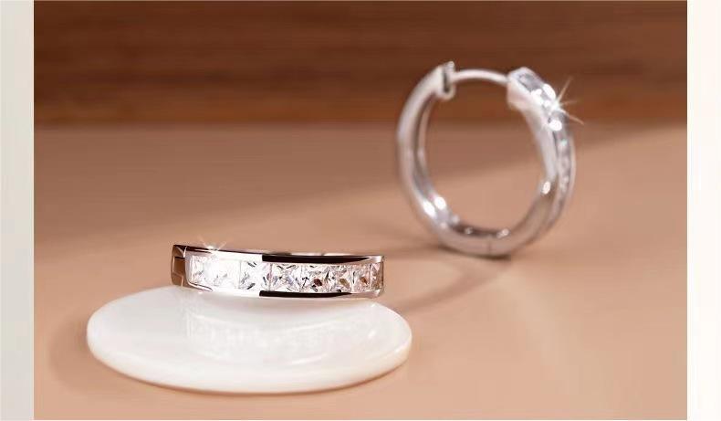 er606 silver square diamond earrings