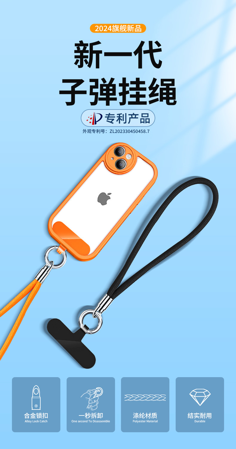 bullet wrist strap [light camel] 6mm round rope + large hanging ring binder pieces + fastened ring