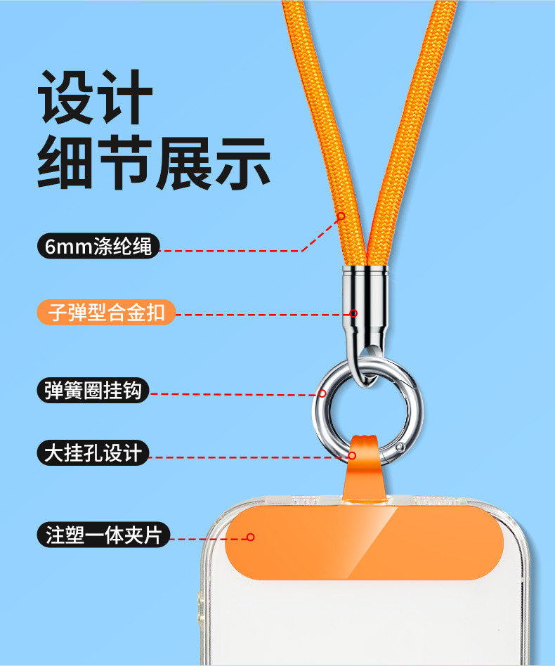 bullet crossbody rope [light camel] 6mm round rope + large hanging ring binder pieces + fastened ring