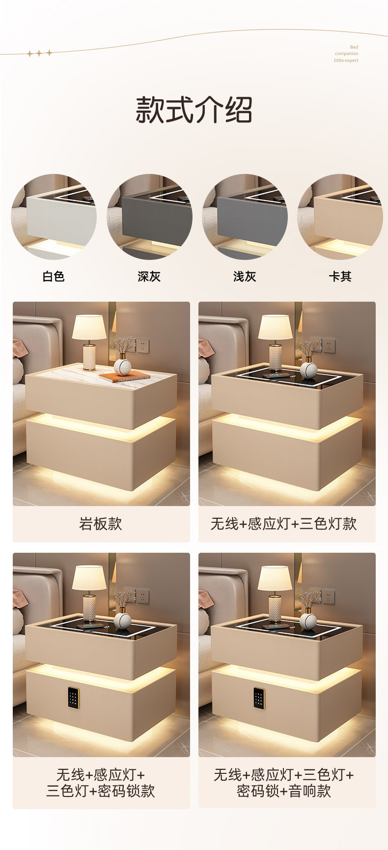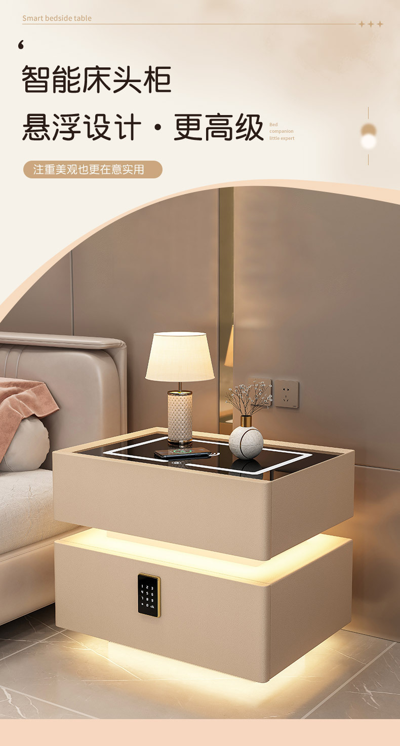 Suspension Smart Bedside Table Modern Minimalist Wireless Charging Italian Minimalist Bedroom and Household Creative