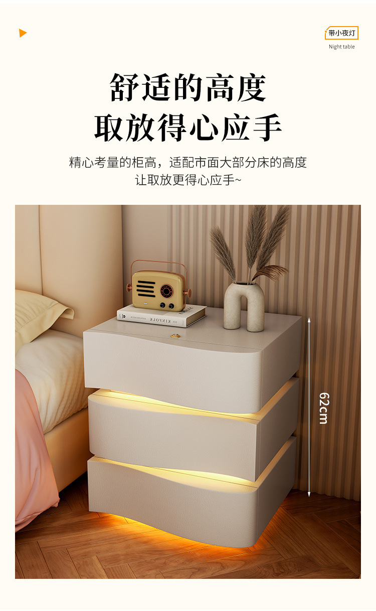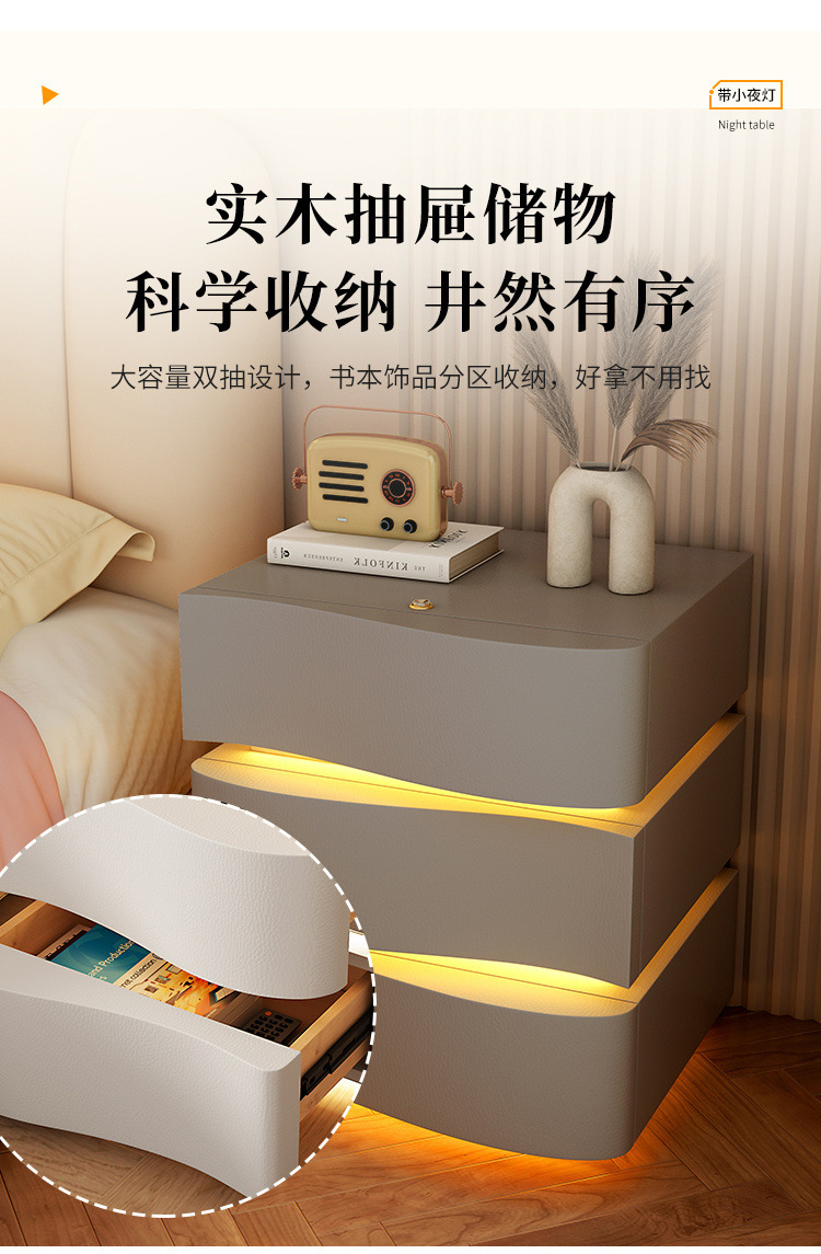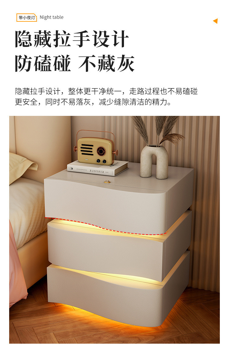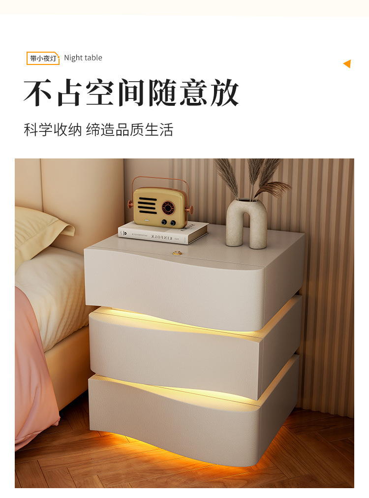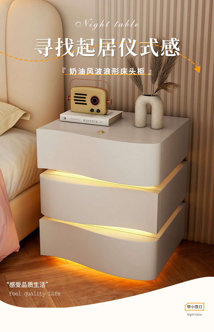 2025 new creative three-drawer storage cabinet cream style bedside table modern simple home bedroom bedside cabinet with
