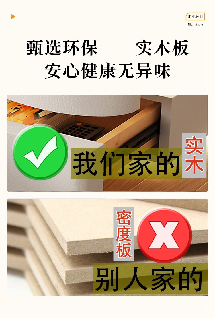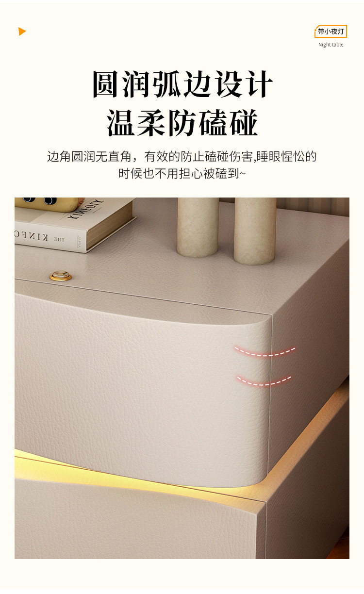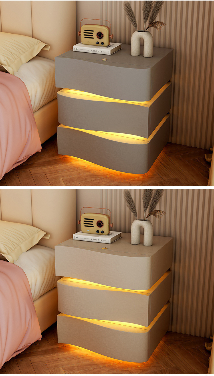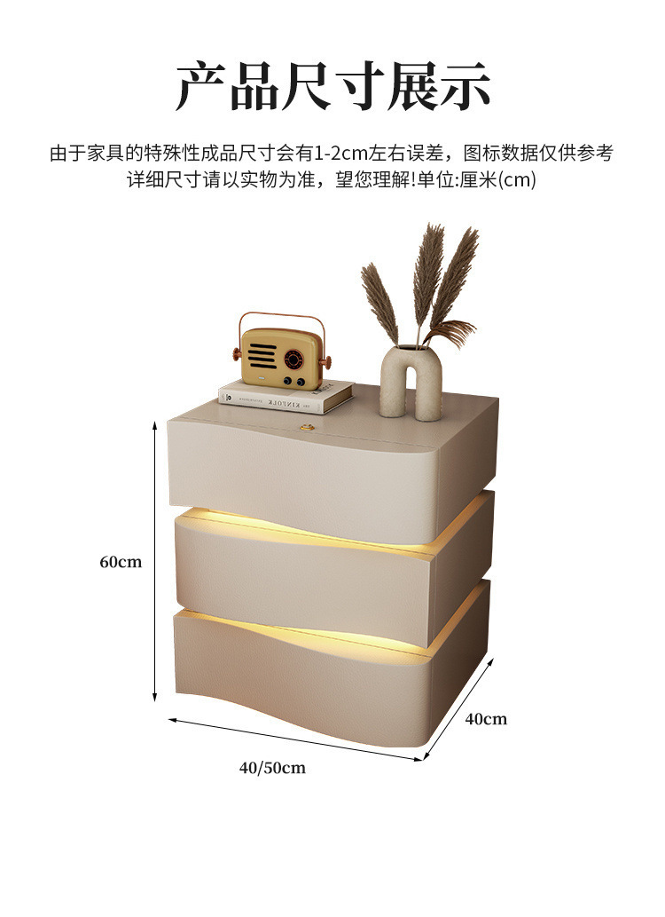 2025 new creative three-drawer storage cabinet cream style bedside table modern simple home bedroom bedside cabinet with