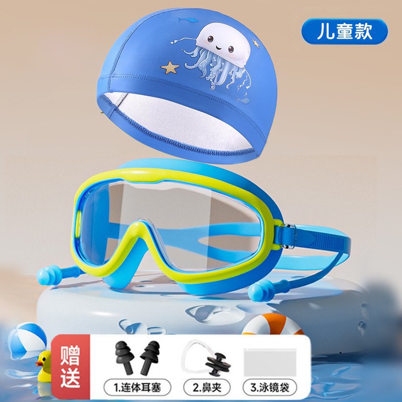 yellow and blue [swimming cap suit]]