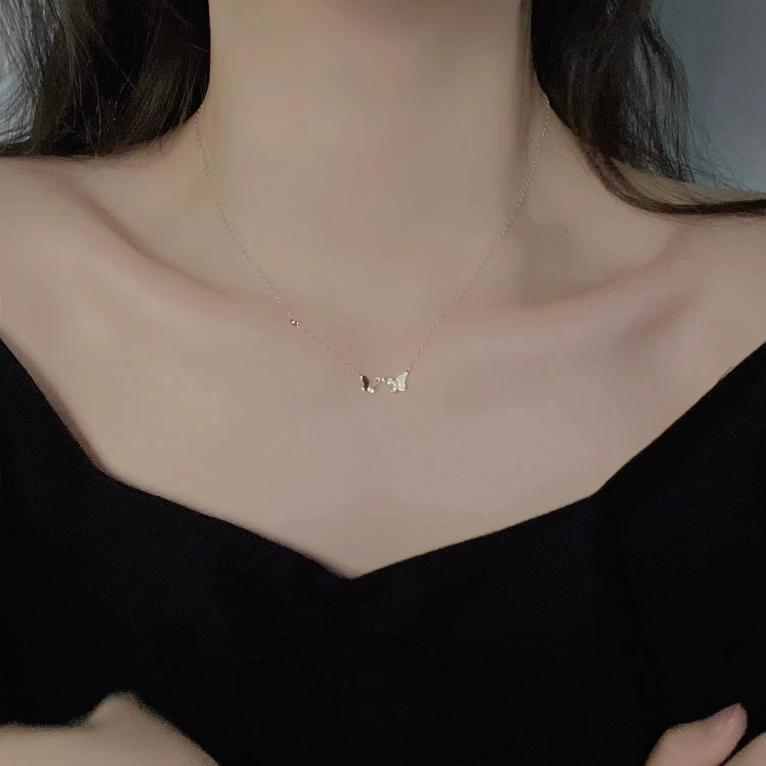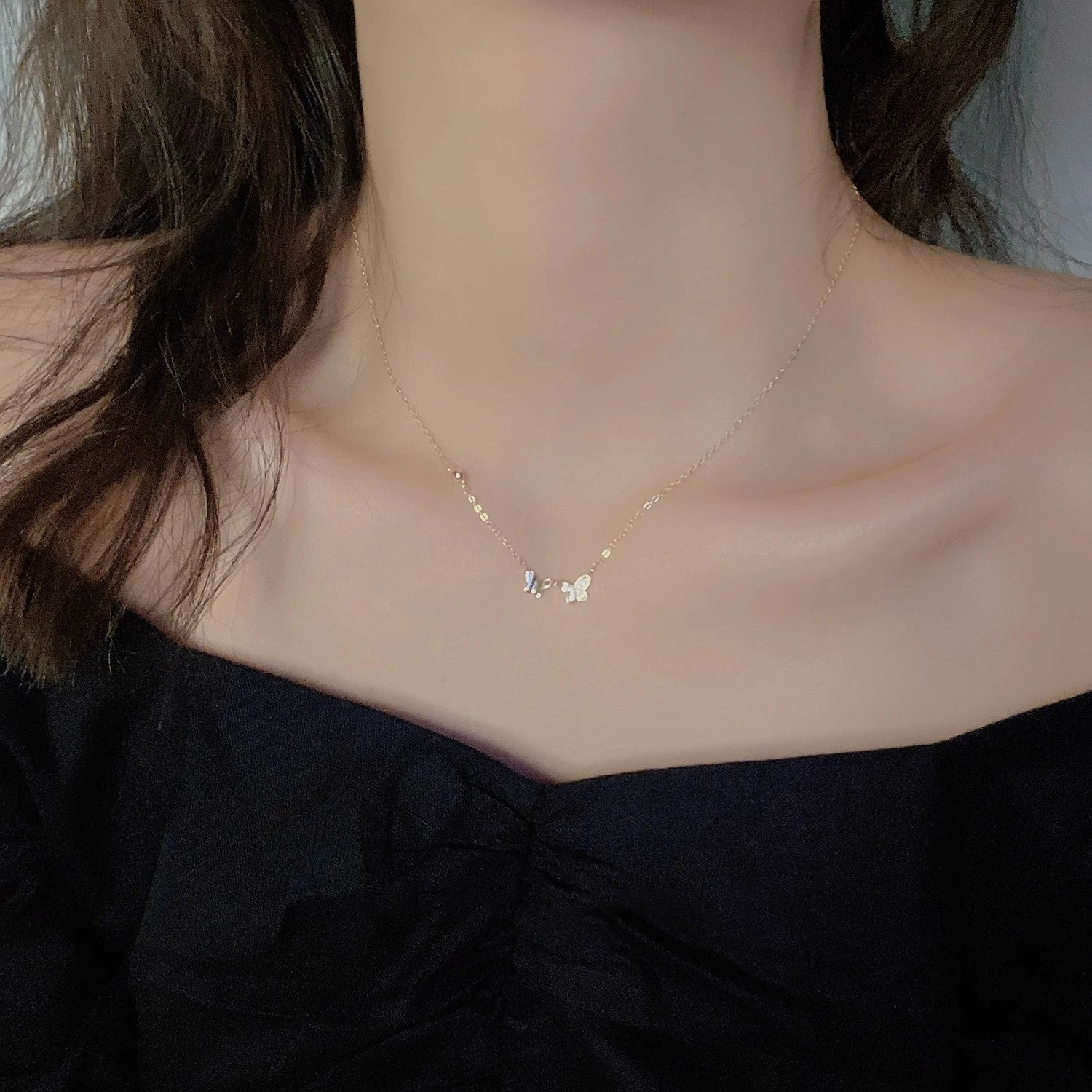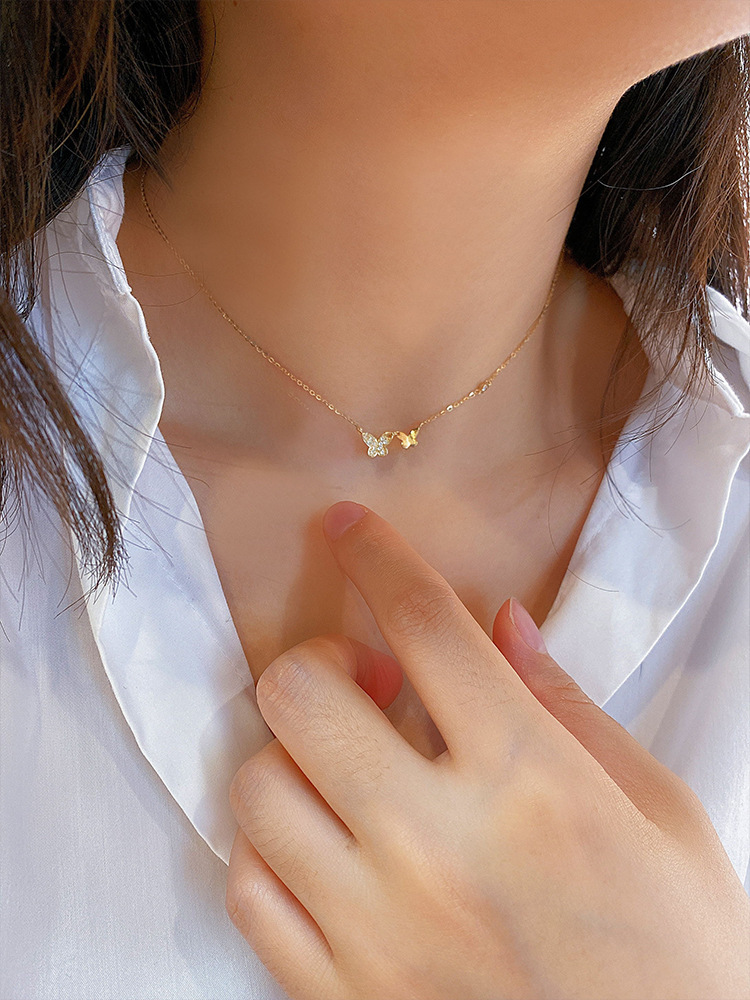 The large butterfly is about 9.1*6mm, the small butterfly is about 8*5mm, the chain is about 1.1mm thick, and the entire necklace is about 1.4g.