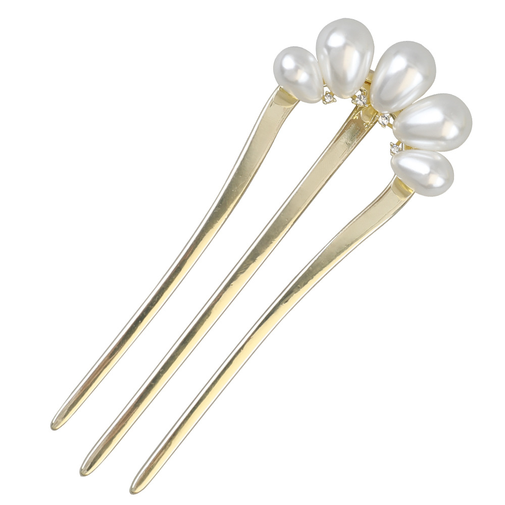 three-tooth hairpin-water drop bead gold