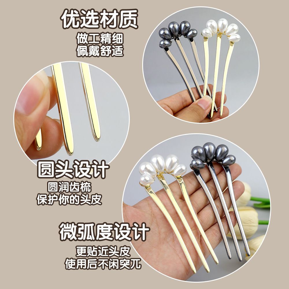three-tooth hairpin-water drop bead gray