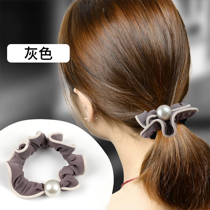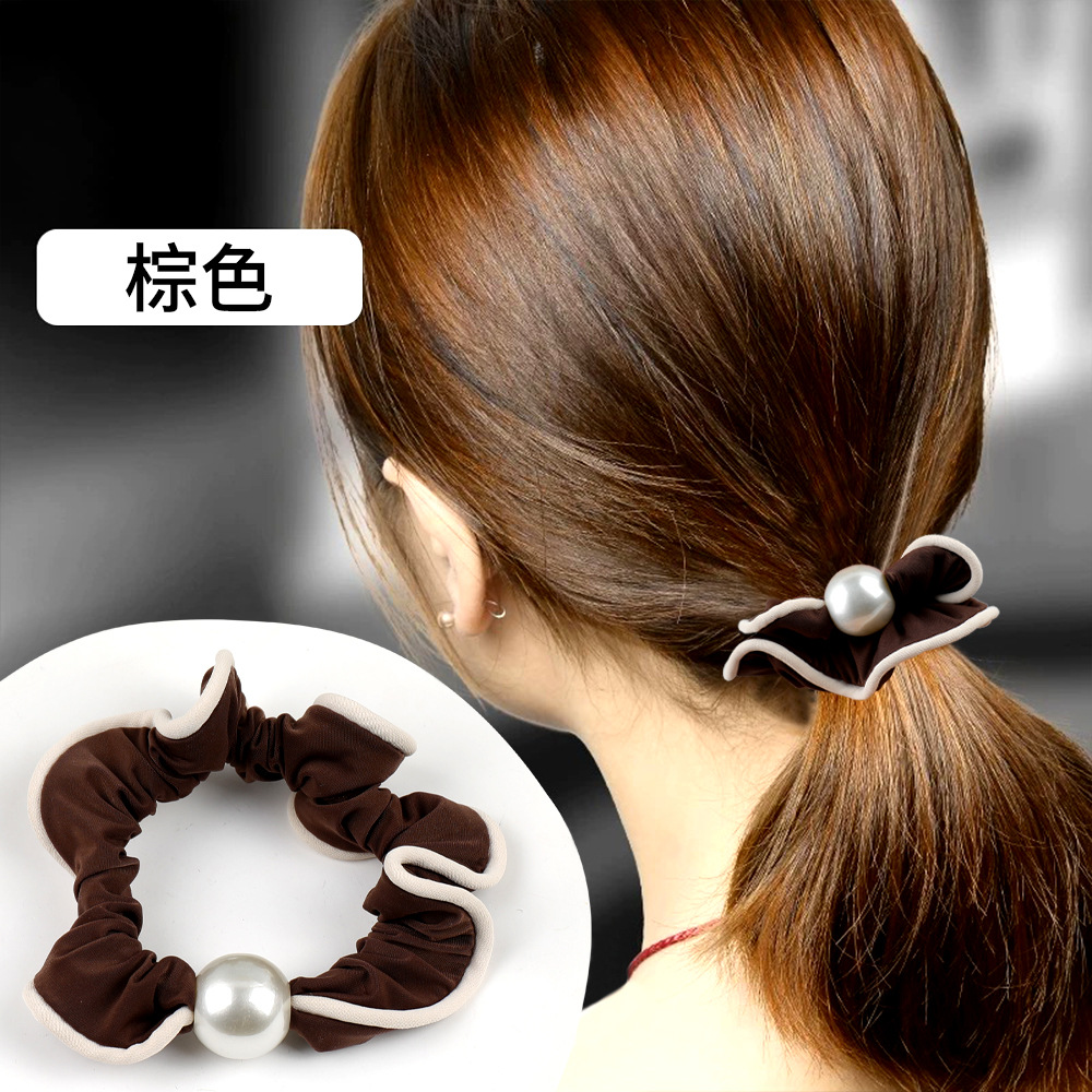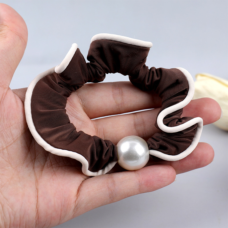 pearl khaki satin hair ring