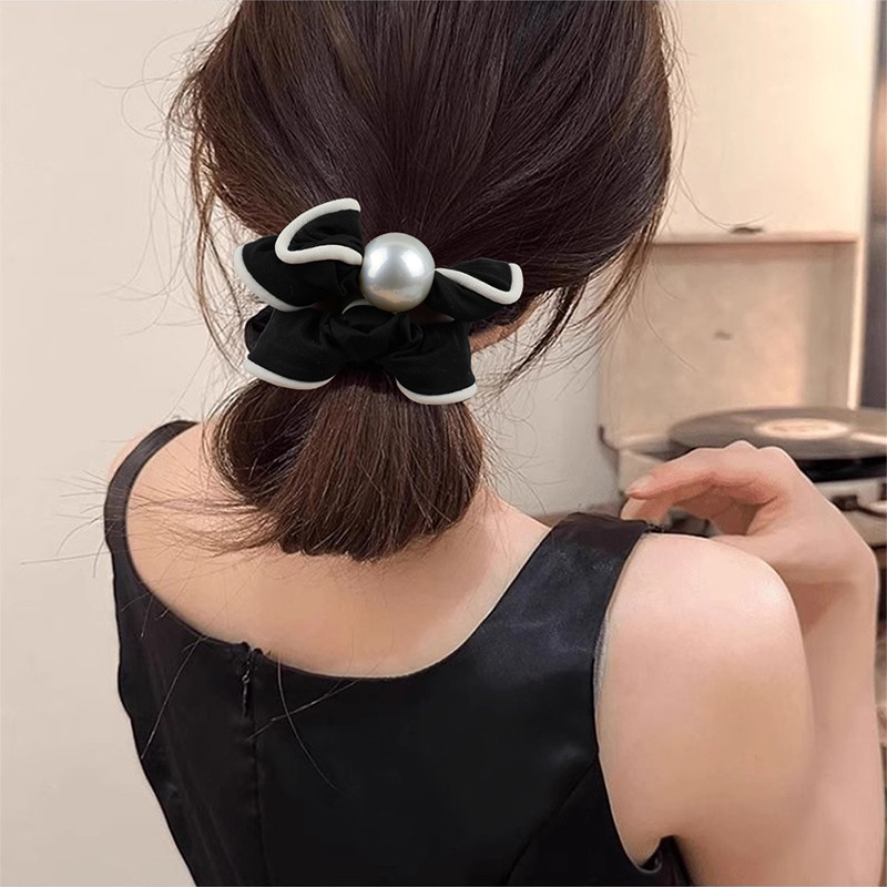 pearl black satin hair ring