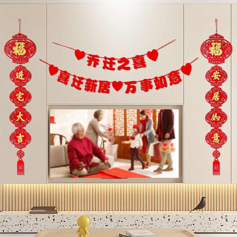 housewarming hanging flag + lantern couplet set with 2 hooks for free