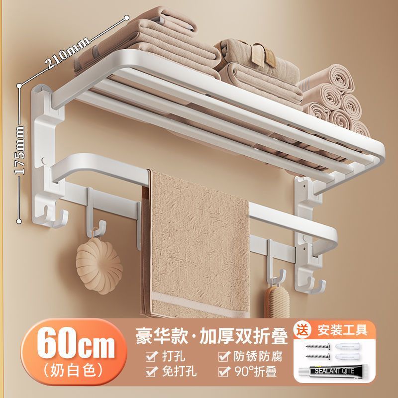 milky white-flat tube double foldable towel rod-60cm-without hook