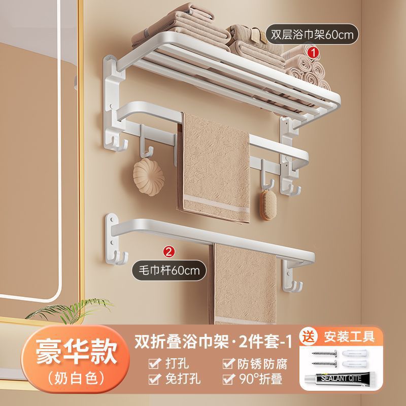 milky white-flat tube double foldable towel rod-4-piece set a (with hook)