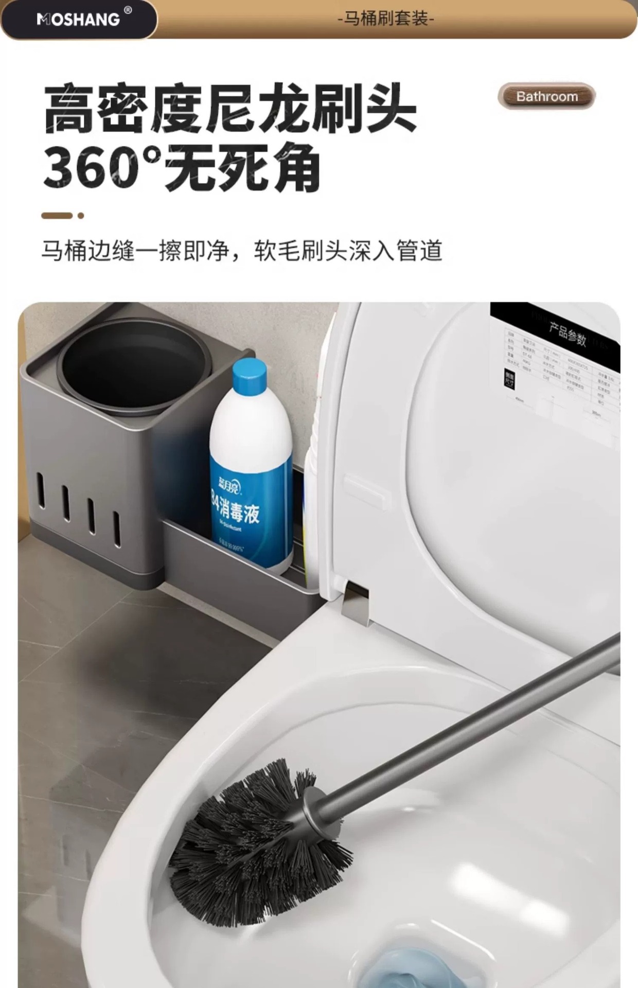 [upgraded with water collection tray] milk white-simple toilet brush rack