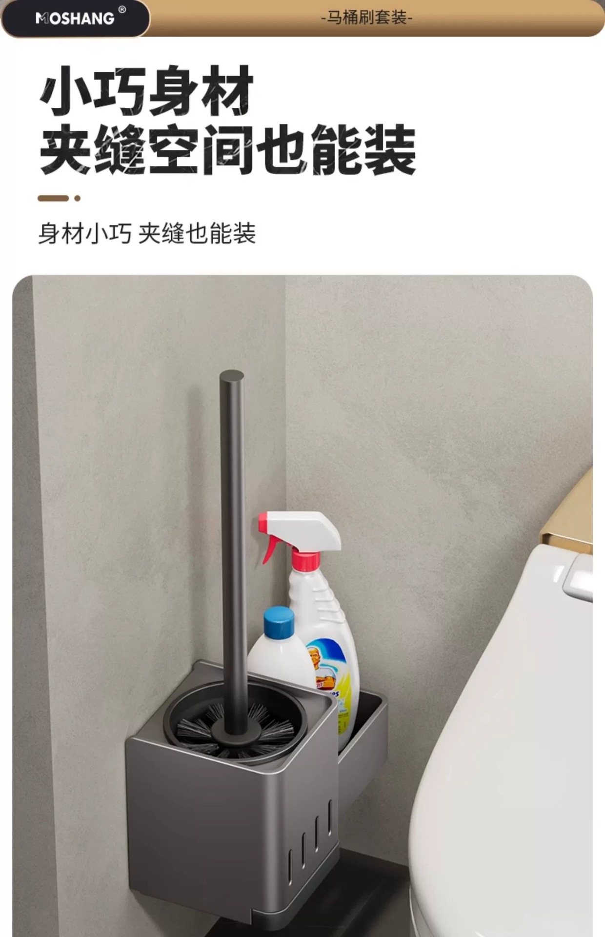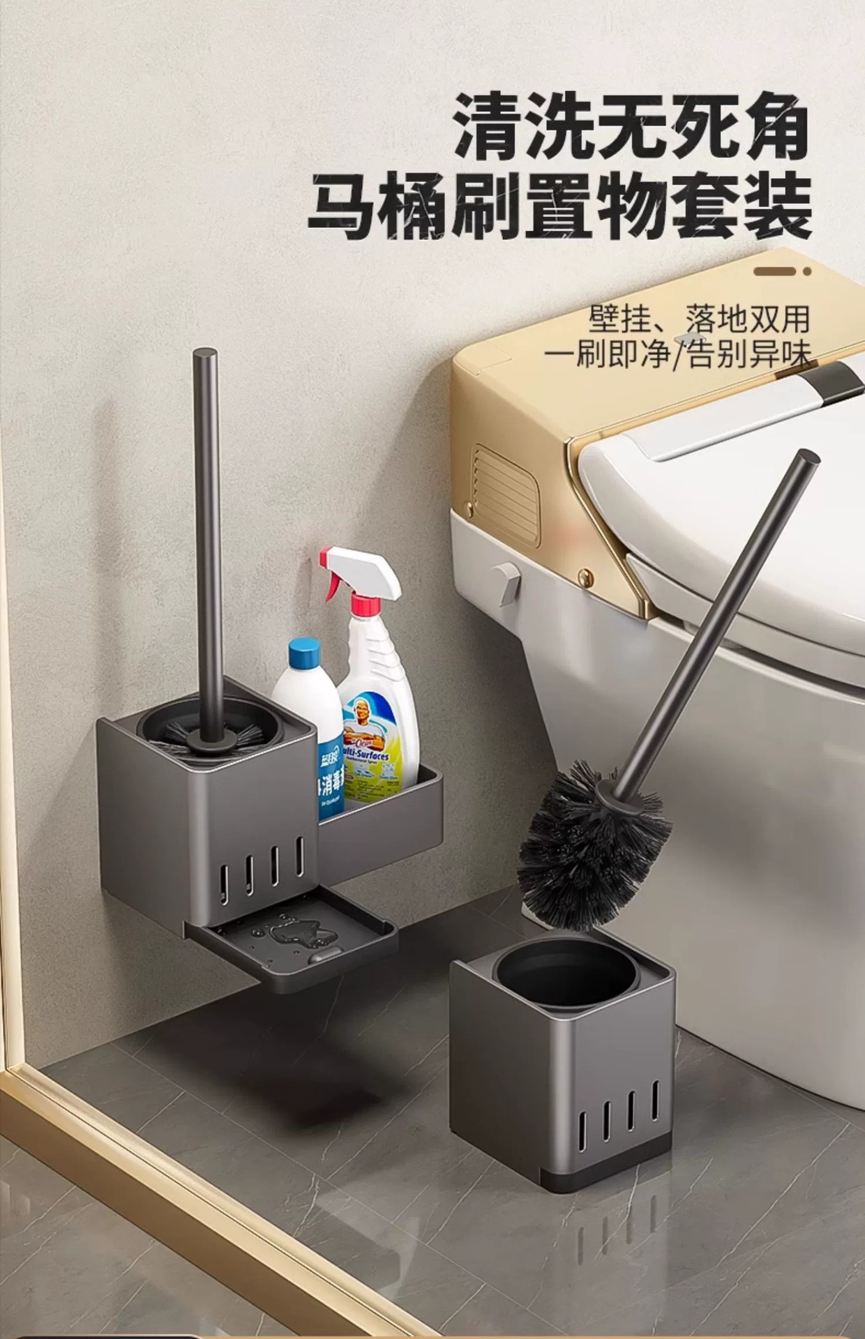 [upgraded with water collection tray] gun gray-simple toilet brush rack