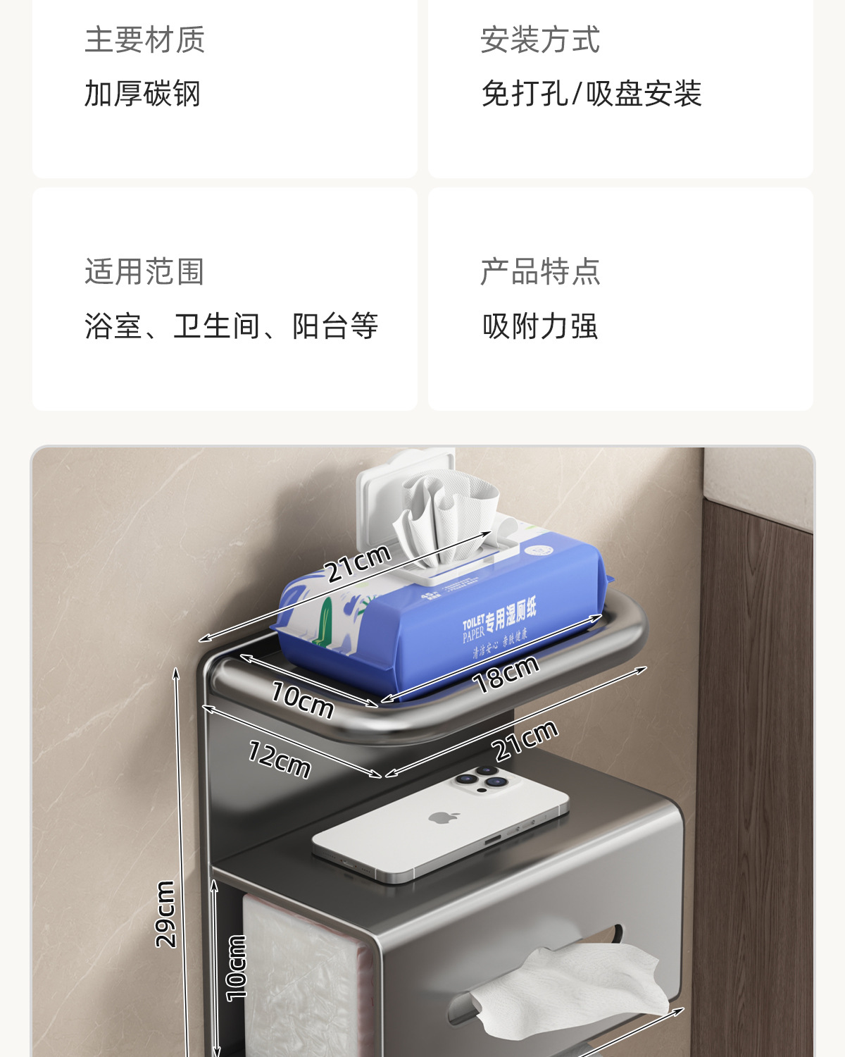 [suction cup] gun gray single-layer extended tissue holder
