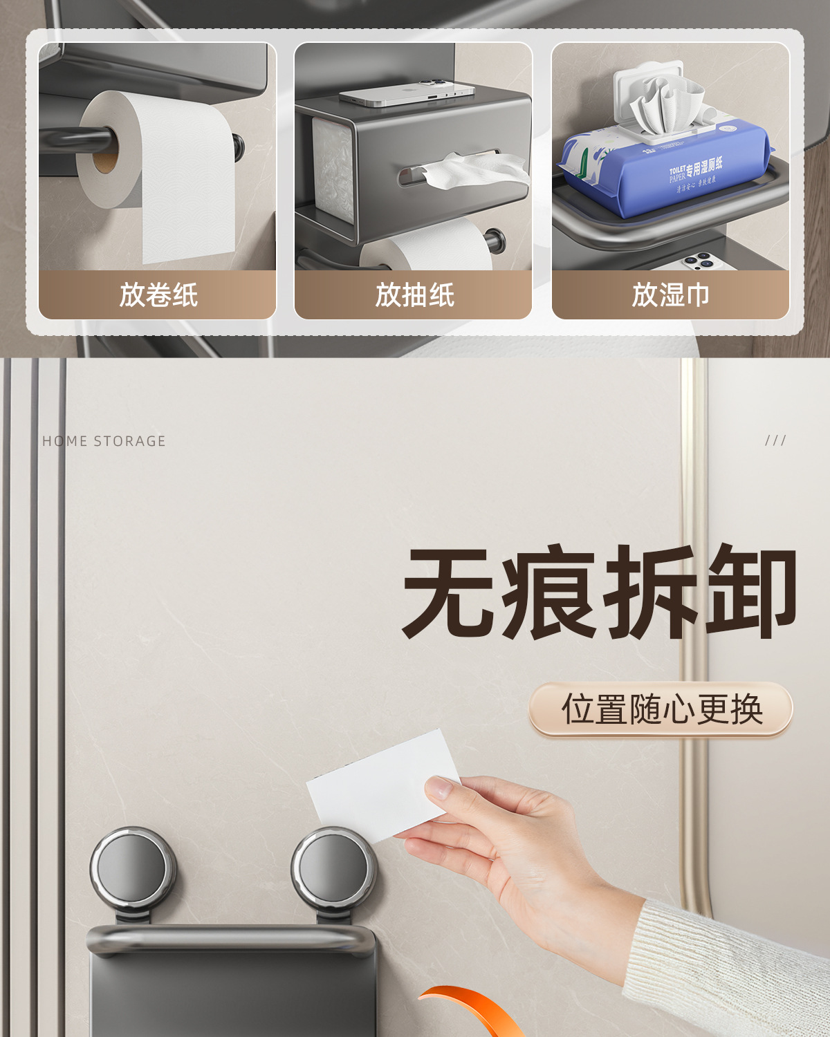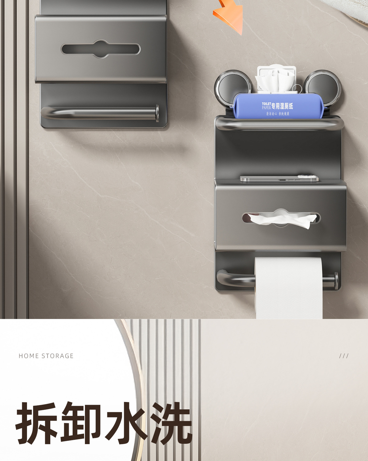 [suction cup] gun gray double-layer tissue holder