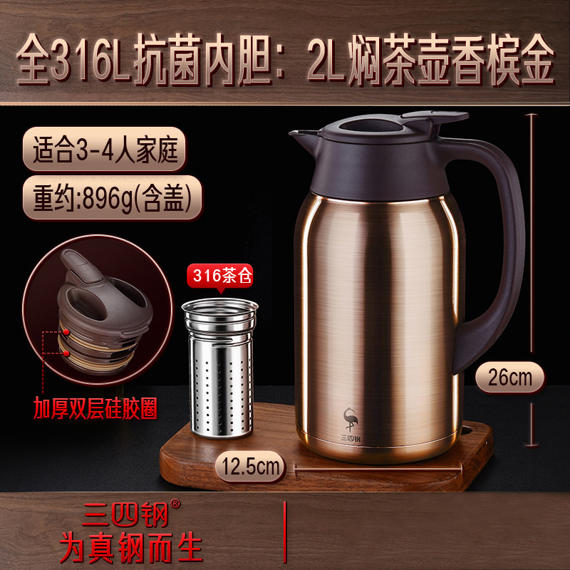 [316l stainless steel] berlin classic braised teapot: champagne gold 2.0l (with 316 independent tea warehouse)