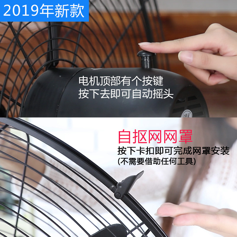 500 floor fan [plastic steel blade button shaking head self-picking mesh cover free installation tools]]