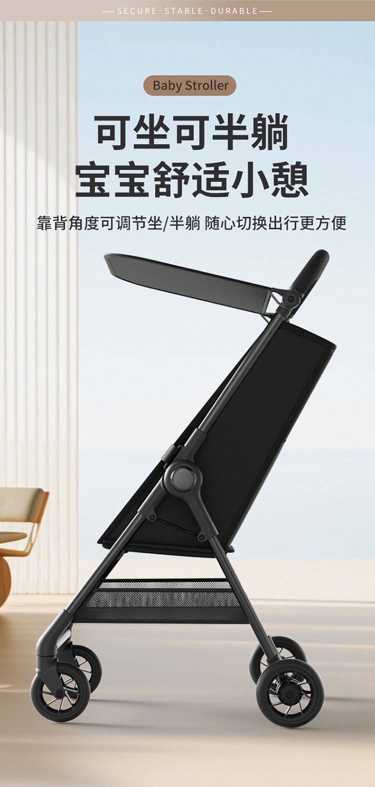 black can sit and lie half + bottom frame + sunshade