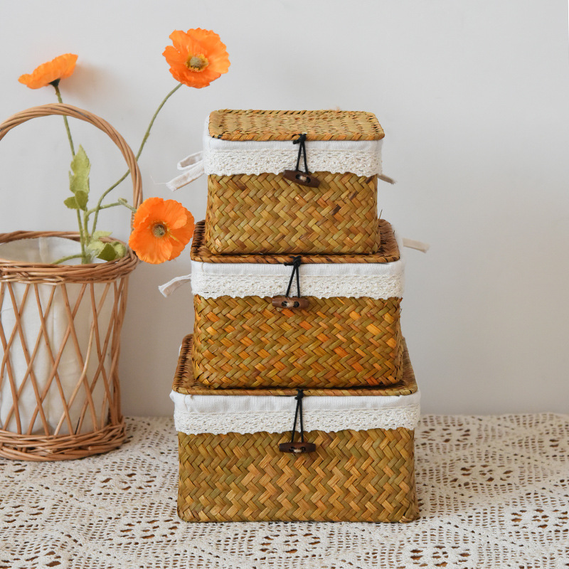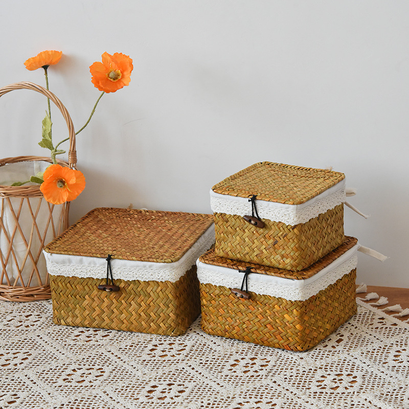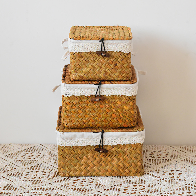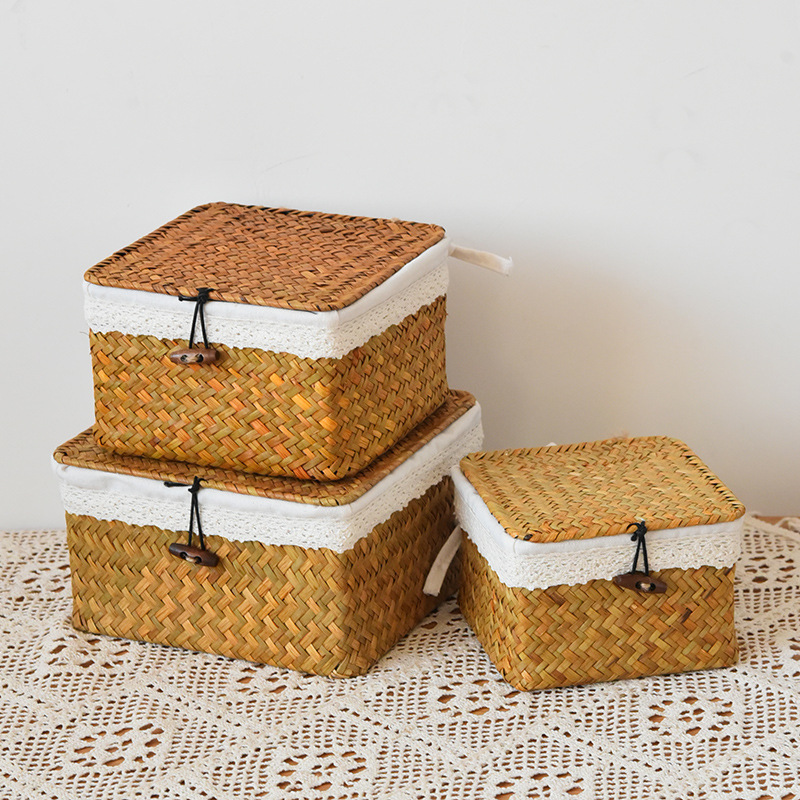 square with cover white cloth lining large, medium and small 3-piece set