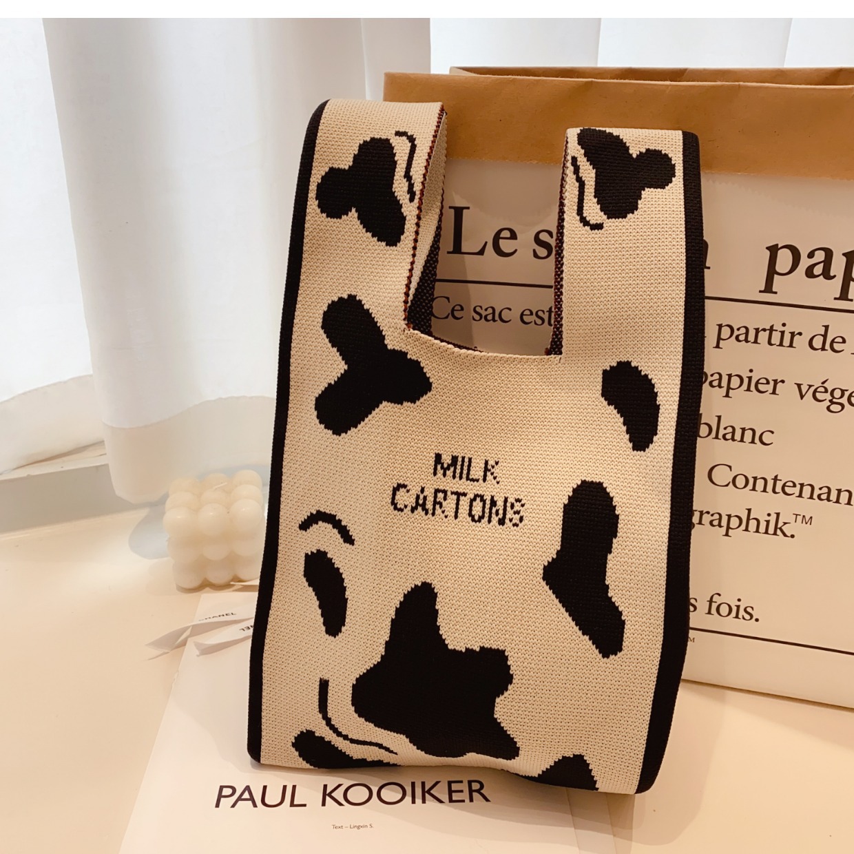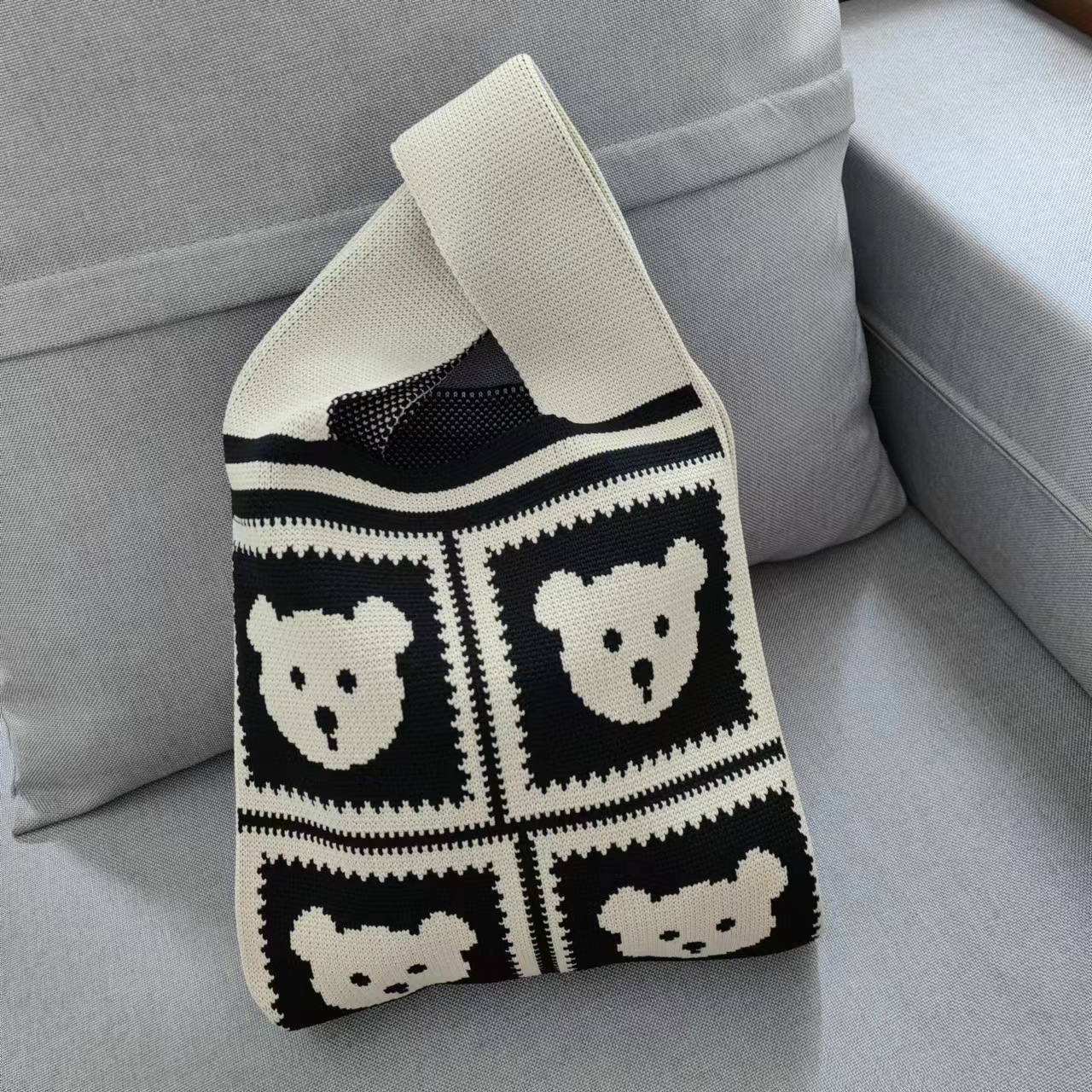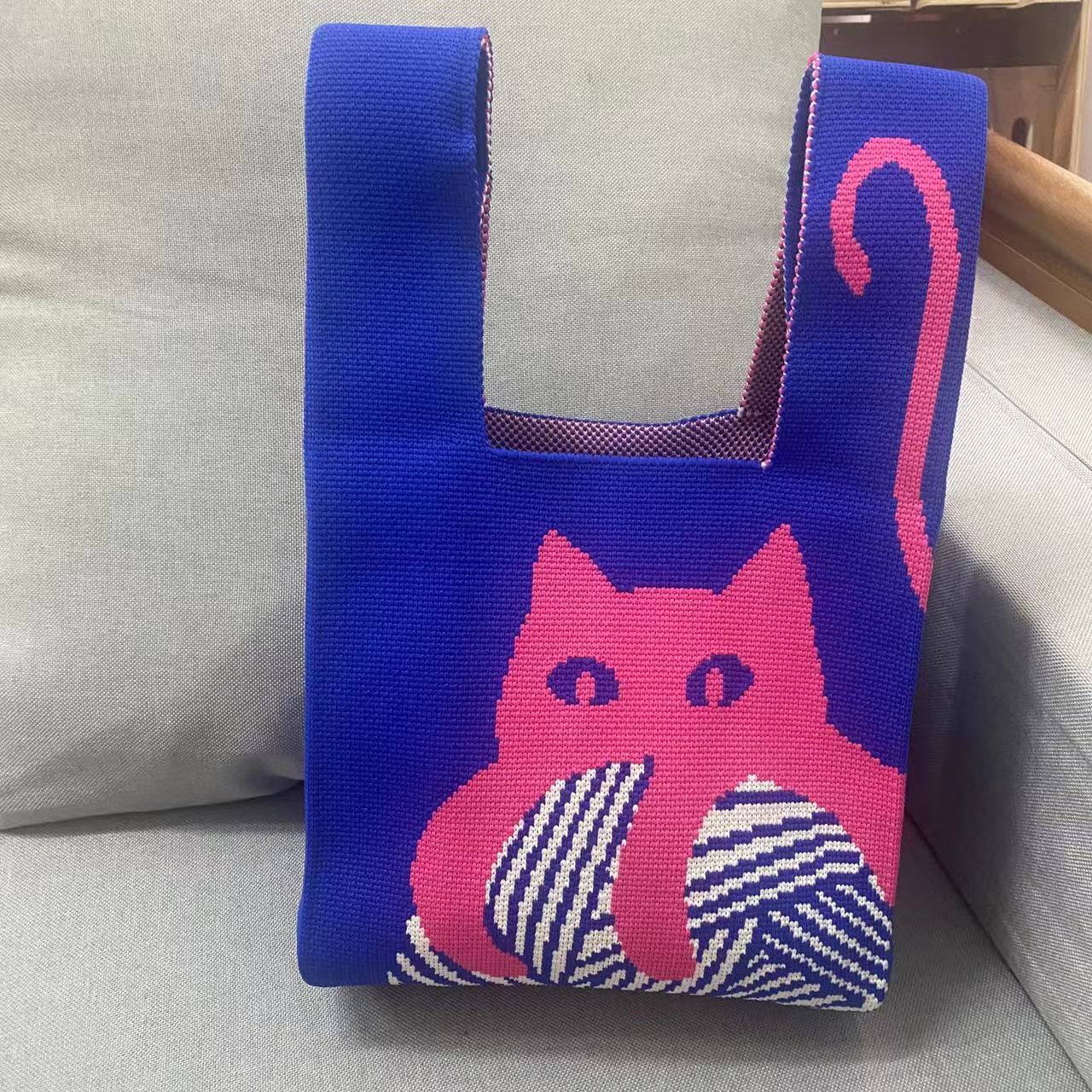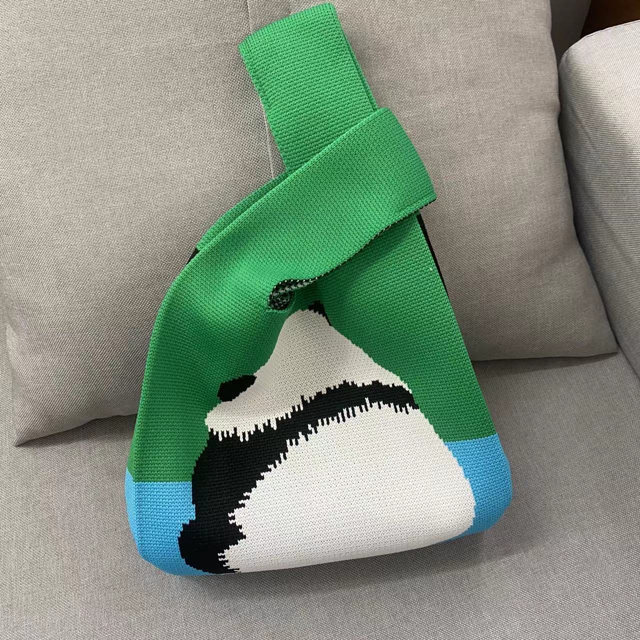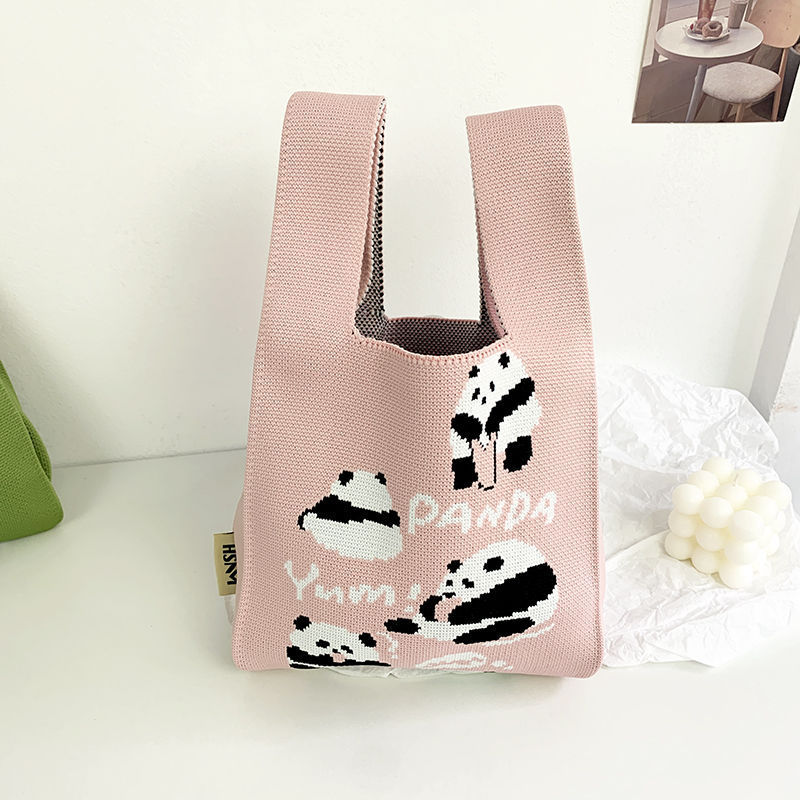 pink five pandas knitted bag