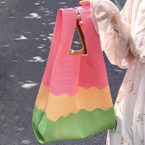 rainbow knitted bag green