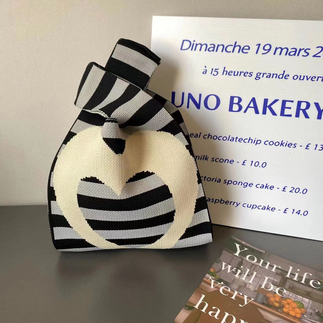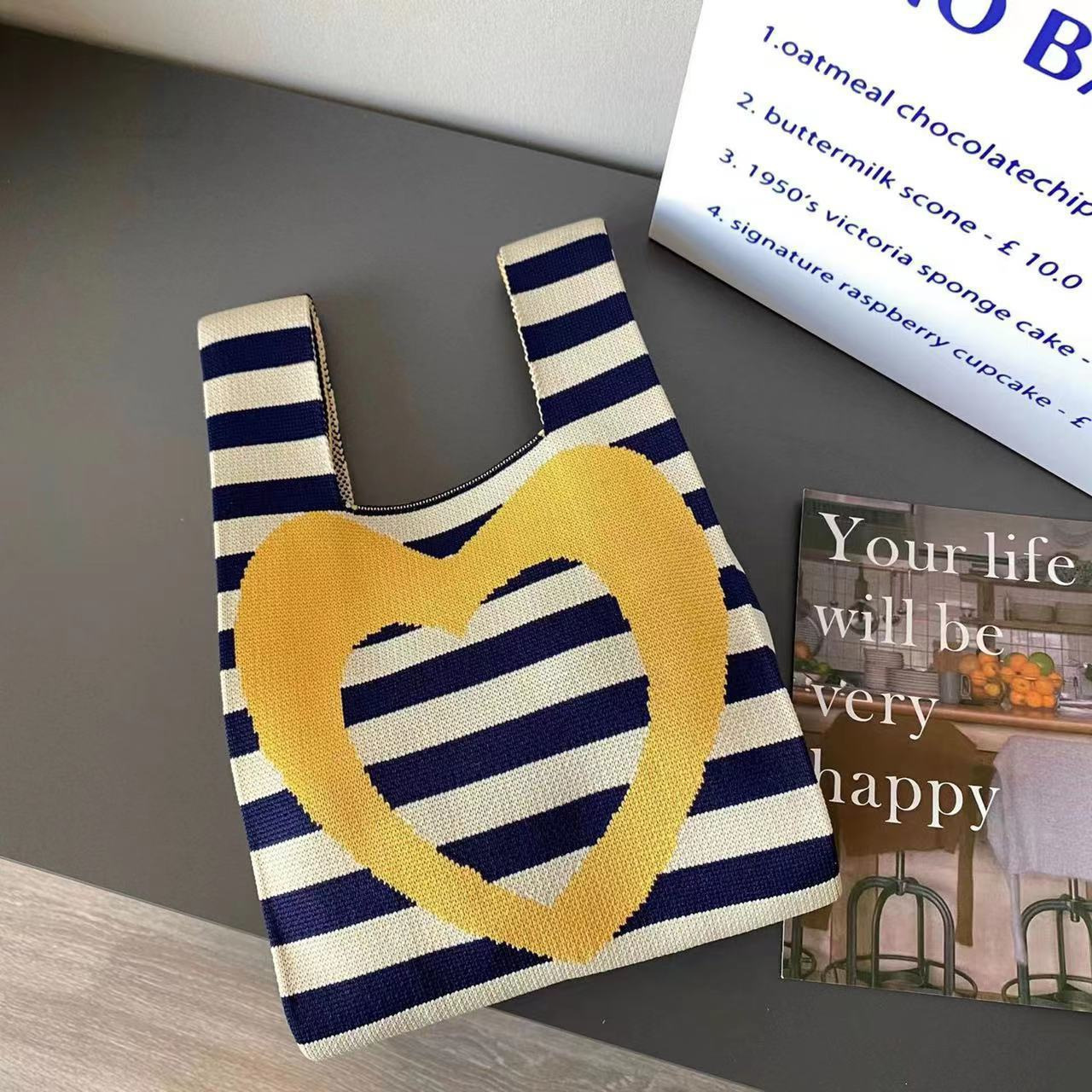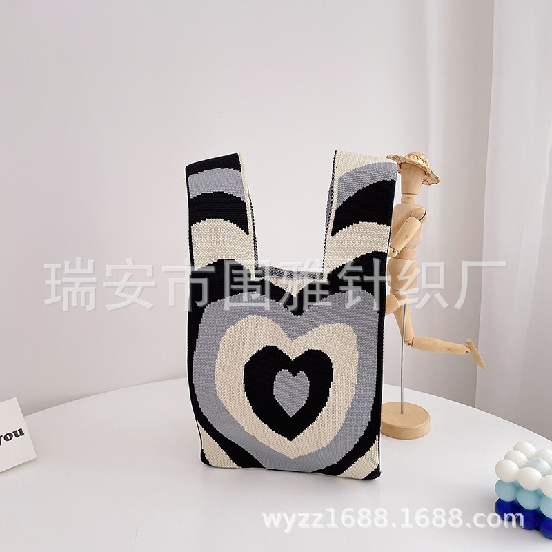 heart knitted bag black