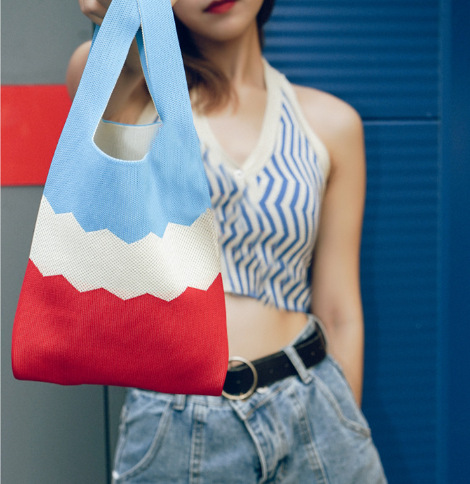 rainbow knitted bag rose red