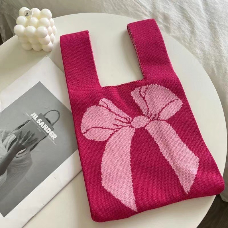 bow knitted bag rose pink