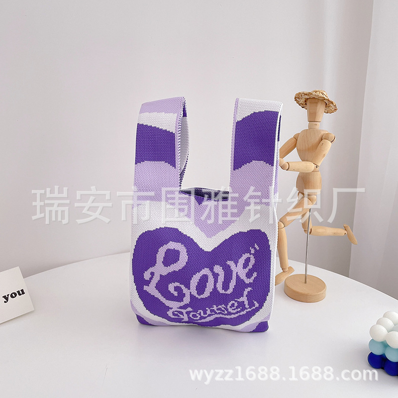 heart knitted bag purple