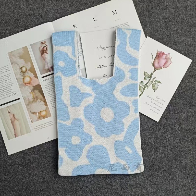 flower knitted bag blue