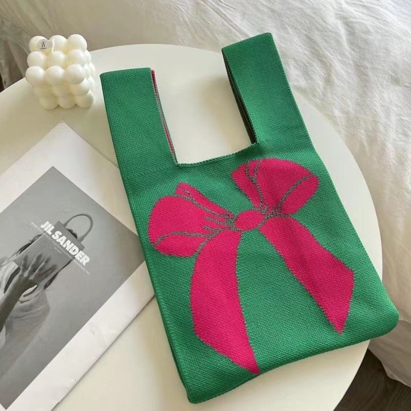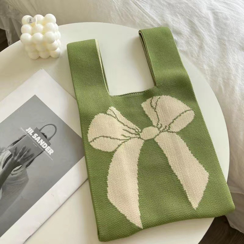 bow knitted bag green rice