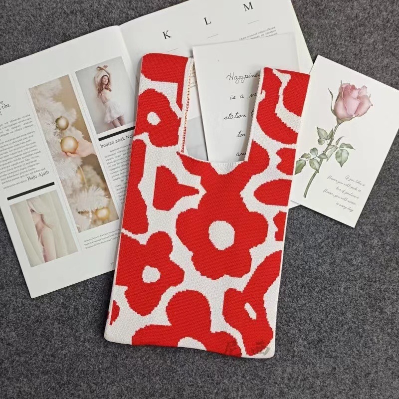 flower knitted bag red