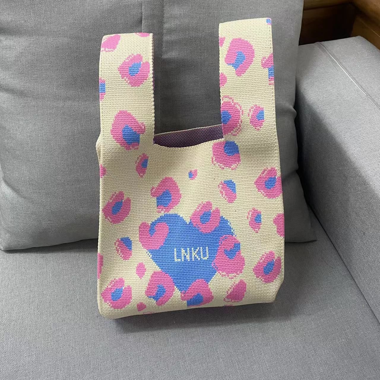 heart knitted bag pink