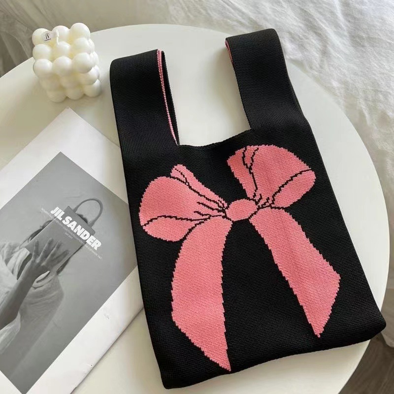 bow knitted bag dark green rose red