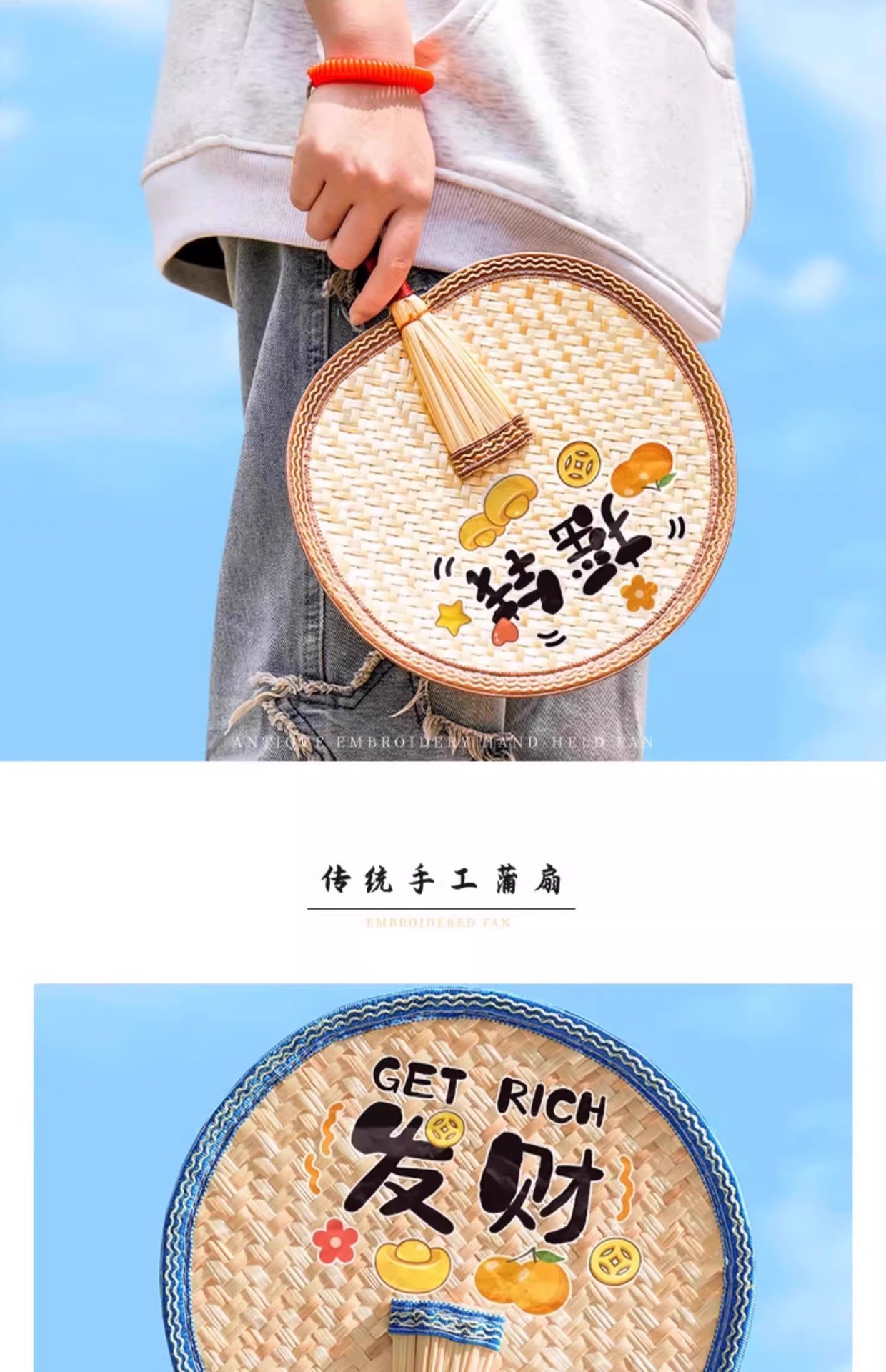 [blue large · shake money] jucai cattail leaf fan | necessary gifts for store opening
