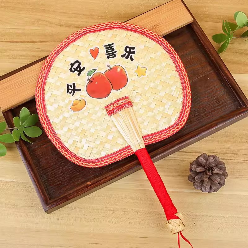 palm-leaf fan [red brocade edge]]