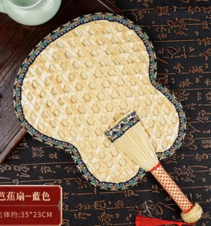 palm-leaf fan [blue brocade edge]]