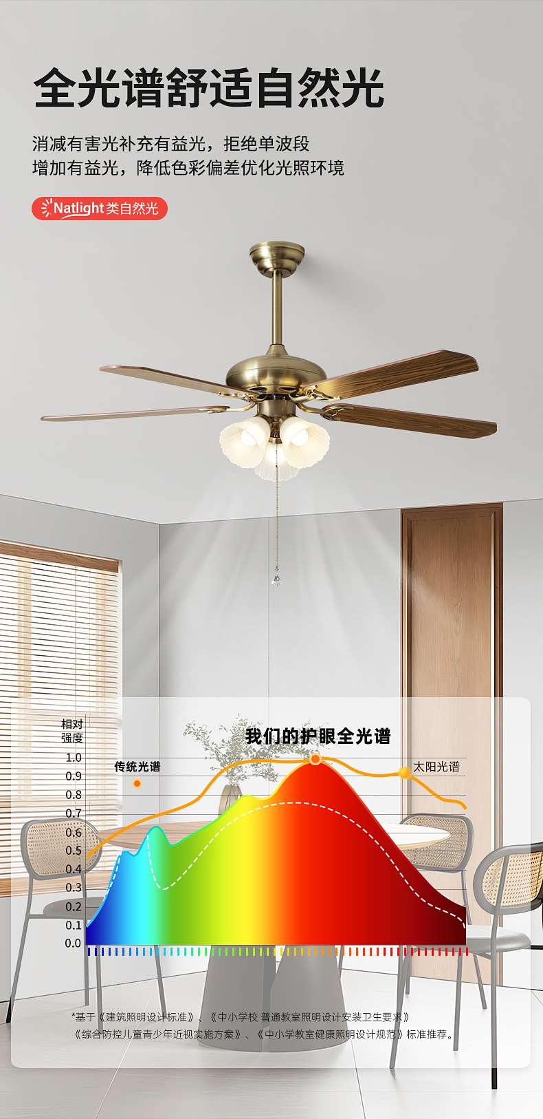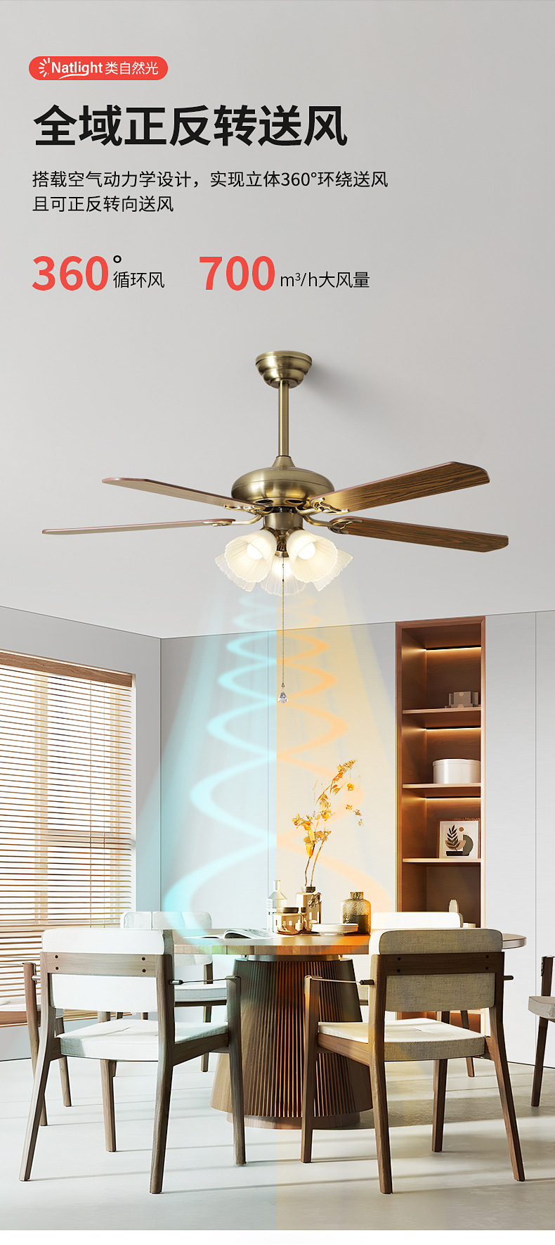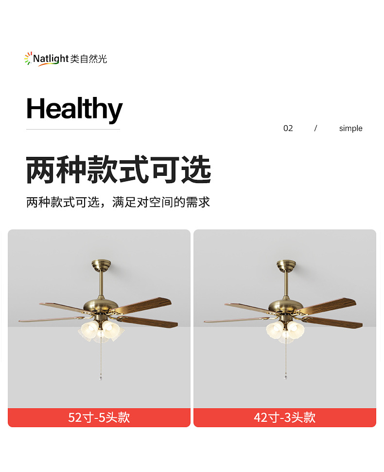 [eye protection frequency conversion] 52-inch wood leaf/5 heads-tmall genie