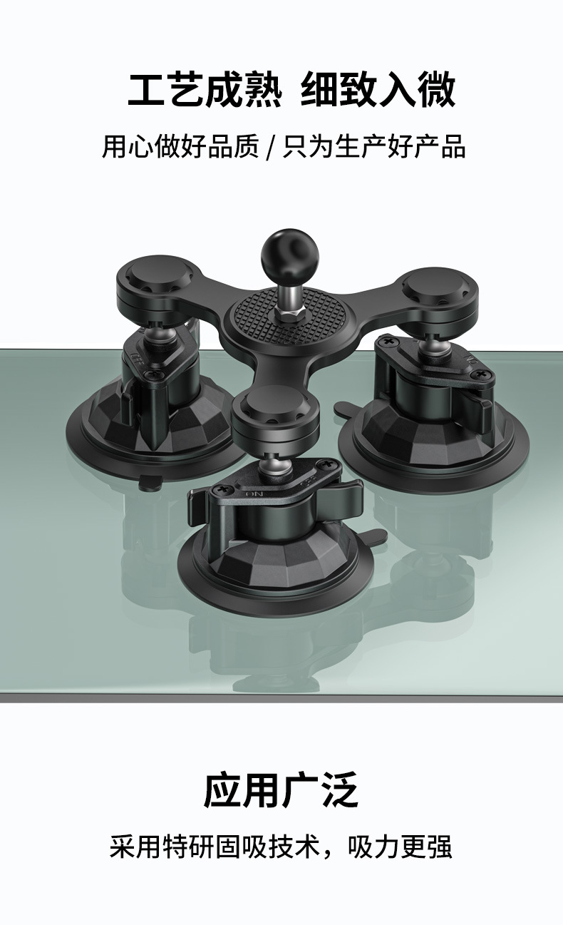 25.4mm rubber coated ball head car three suction cups