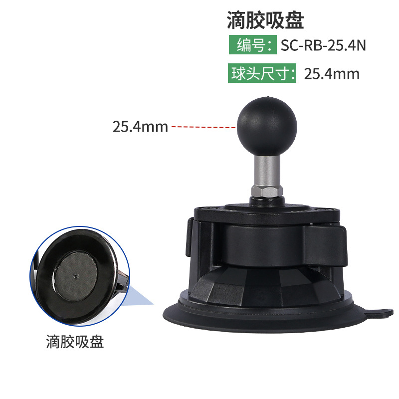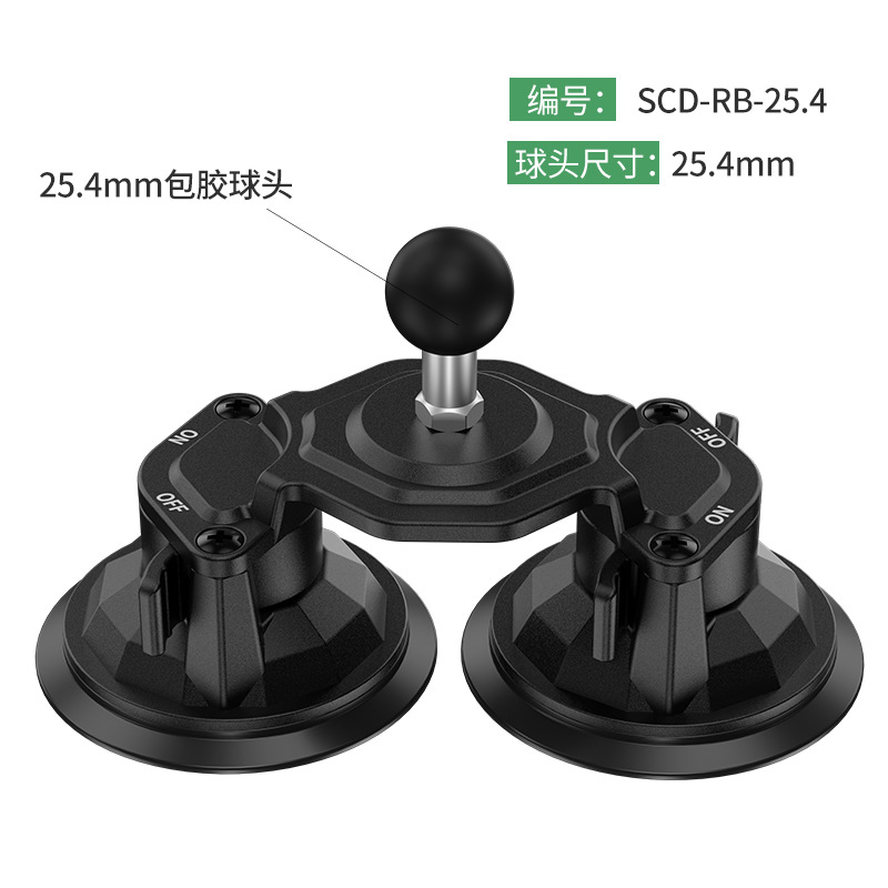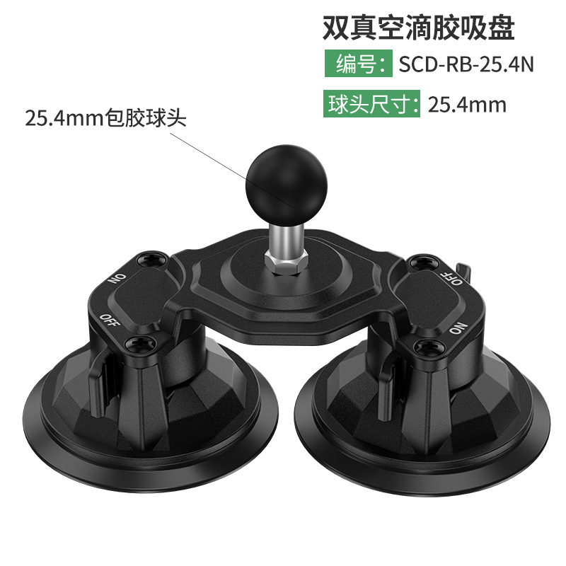 25.4mm rubber coated ball head car double suction cup