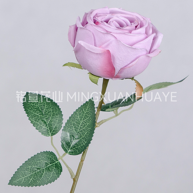 single stem imperial concubine rose with leaves-purple