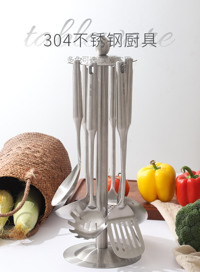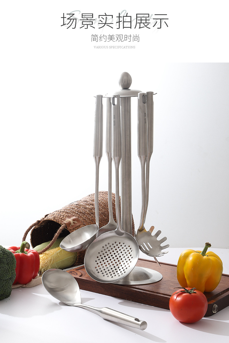 304 stainless steel hollow handle hot pot soup ladle colander spatula spatula slotted spoon kitchen cooking kitchenware six-piece set