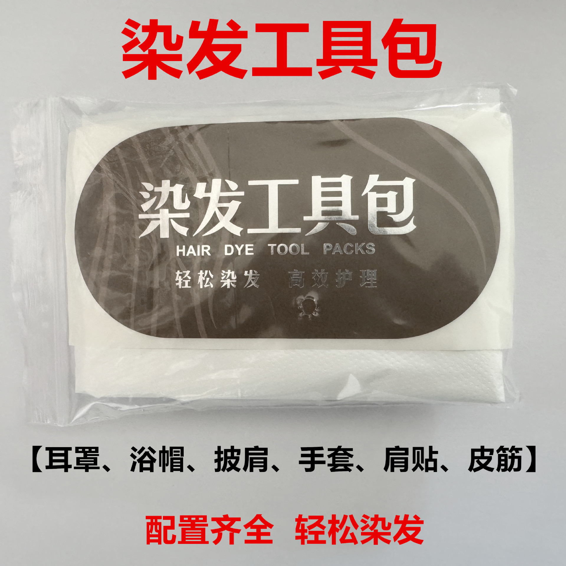 shawl + earmuffs + shower cap + cpe gloves + rubber band + shoulder pad